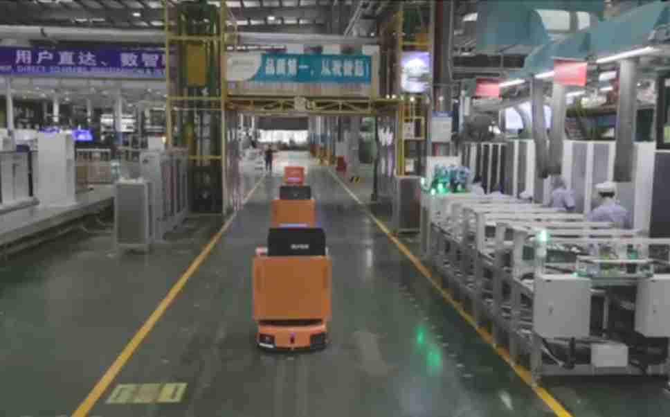 为车载冰箱物流配送打造的智能解决方案,,,包含产中物流通过潜伏举升AMR搬运至线边,,,,产后成品物流智能仓储,,,流程包含产中物流智能齐套入库,,,,线边安灯叫料AMR智能配送至线边,,,成品入库、、、出库,,,,通过无人堆高车机器人,,,,智能仓储管理替代人工作业管理,,实现更高存储、、、更高效率、、更具柔性化的解决方案。。。